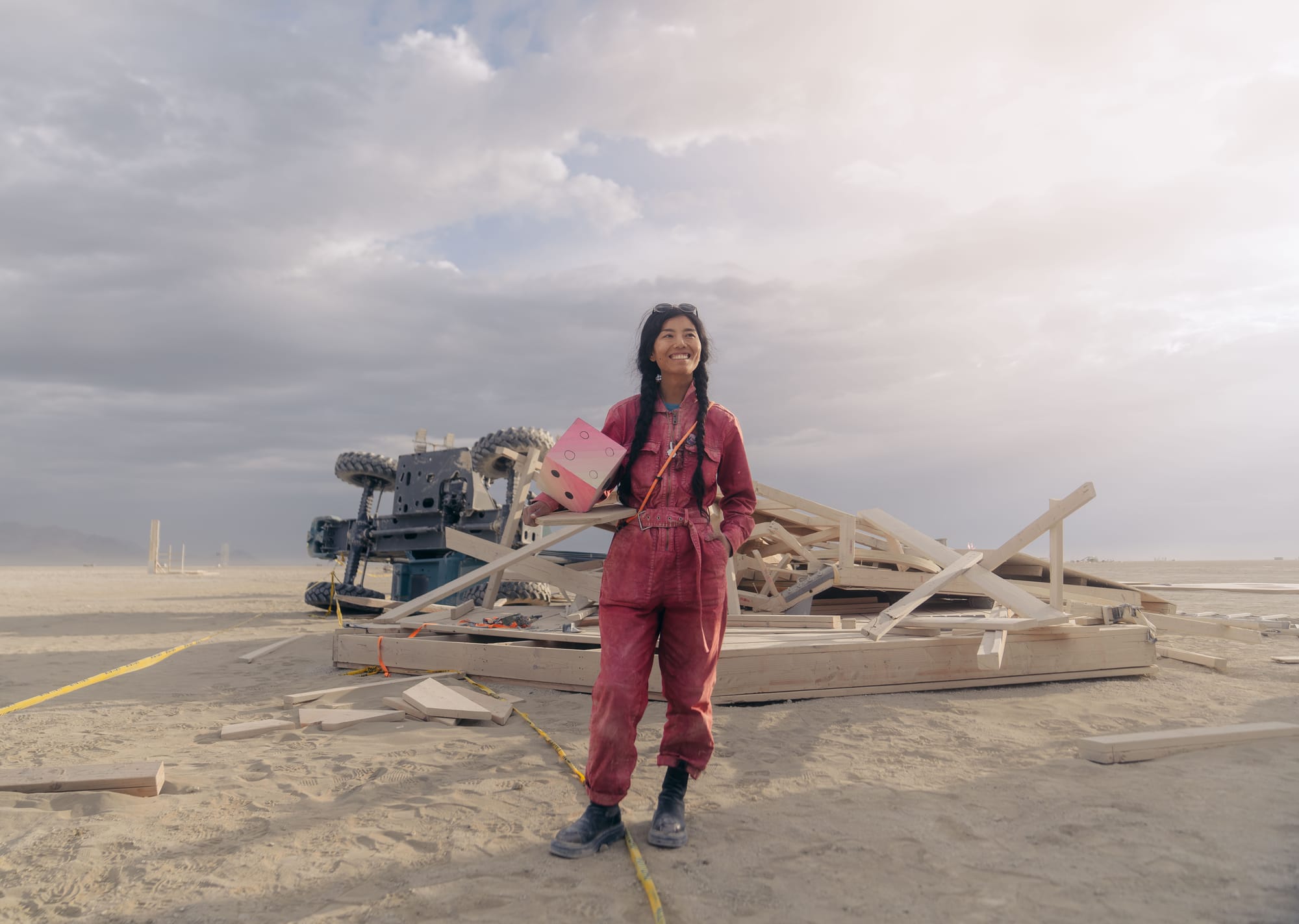 A: This was my fifth Burn and the fourth time bringing an artwork. I’ve always been searching for answers at Burning Man, and this year, in the midst of loss, I found one: the power of family. At Mona Camp, we built a home in the desert. My father, my sister, her husband and daughter, my two sons, my boyfriend—my actual family was there. And beyond that, volunteers from all over the world came together. This diverse group supported each other like family. When the artwork was destroyed, no one complained or blamed. Instead, everyone said, “We’ll do better next time.” That spirit carried us through all difficulties. It made me realize that meaning isn’t in the destination—it’s in the journey. Art isn’t about the final product—it’s about the statement we make by creating.