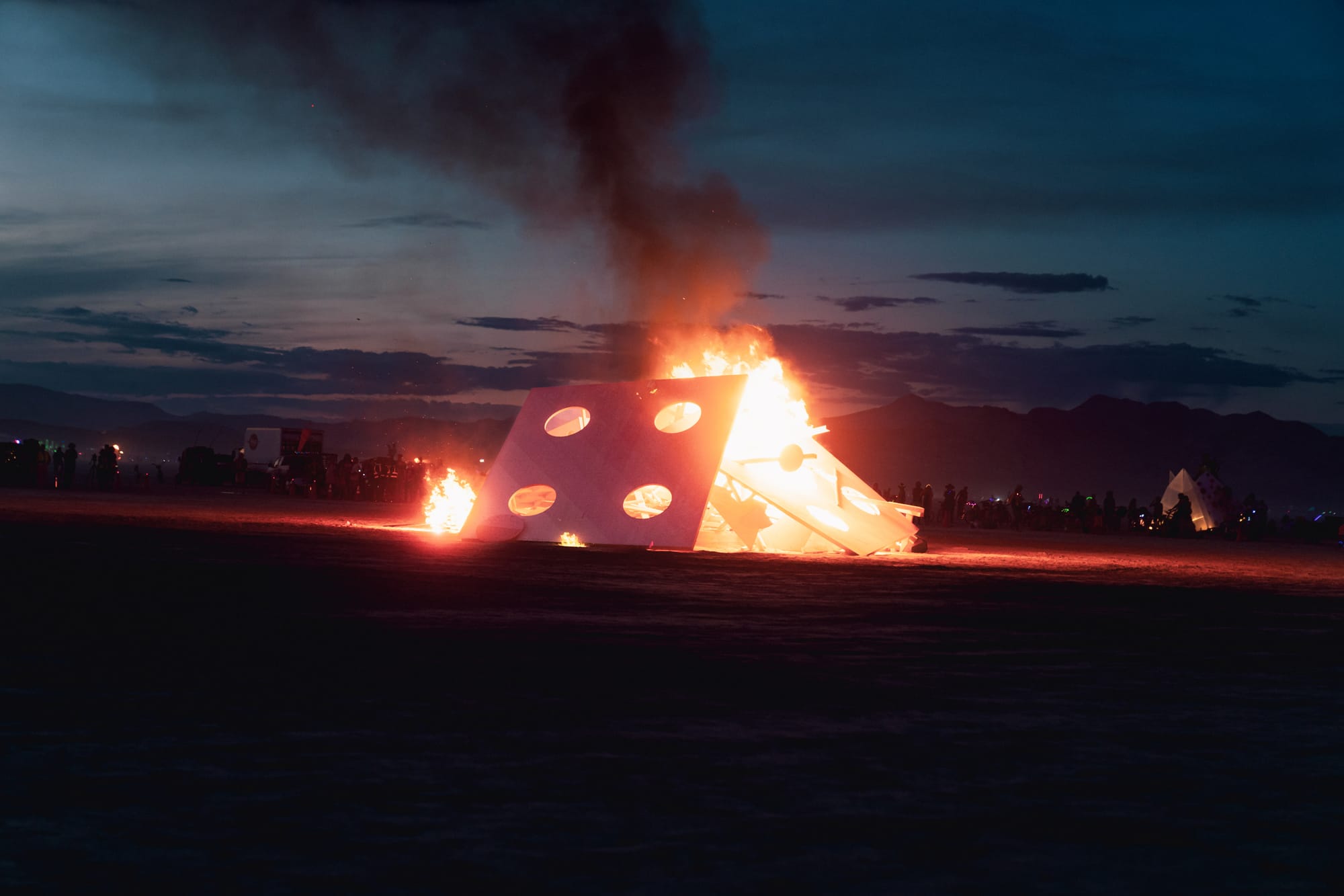 A: This year, my artwork Mona Die Die Die was struck by a severe dust storm on August 23. We were in the final stages of installation—the main structure and base of the large dice were fully assembled, and we had already mounted three of its six sides. But the storm hit suddenly. We didn’t have enough time to separate the dice from the forklift, and the entire piece was uprooted and destroyed.