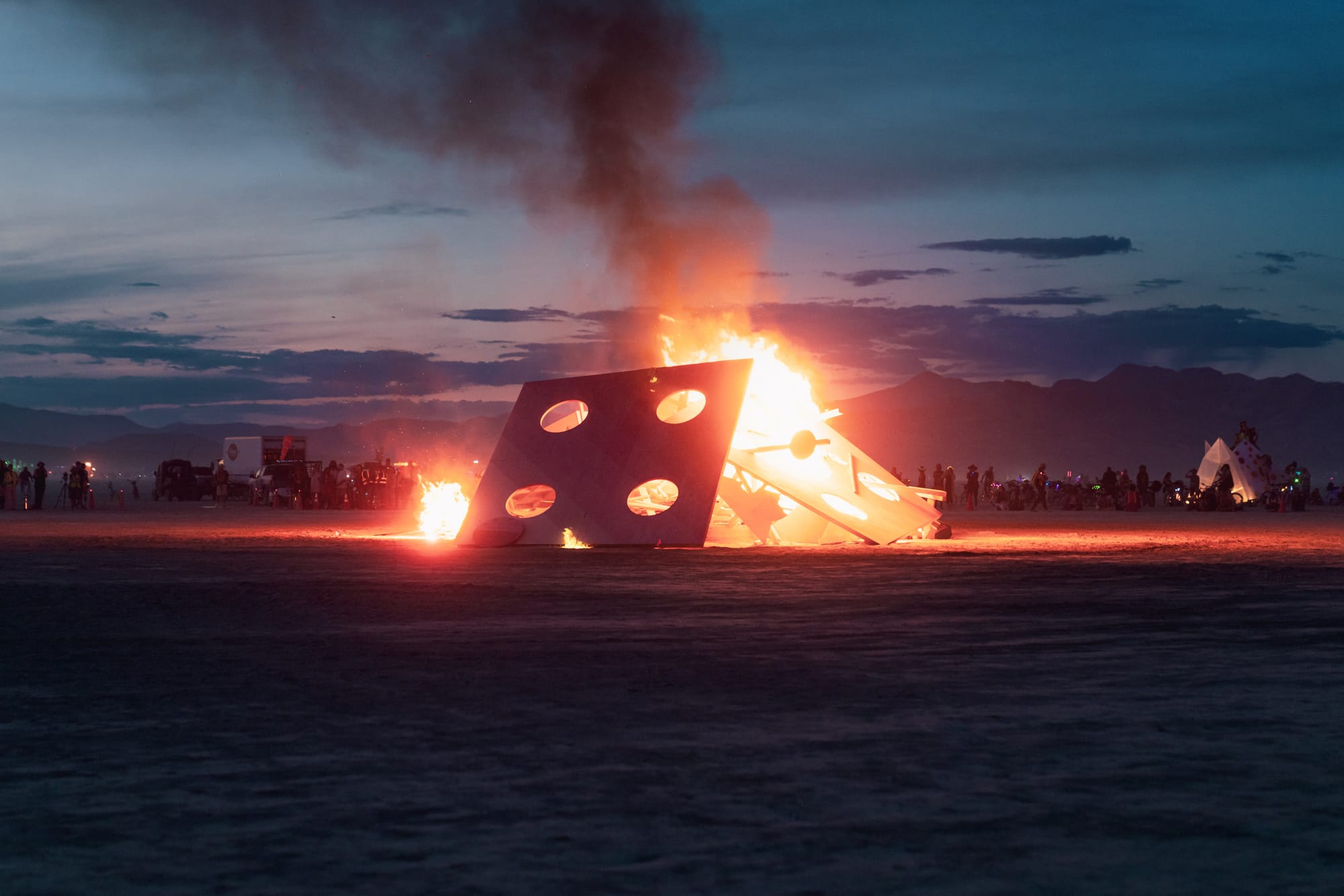 Other artworks also saw untimely and awkwardly early ends, like the anticipated Black Cloud. Many camps were brought down and challenged by the insane weather conditions during the immediate days before the event. Basically everyone out there in the desert building anything needed to revert to their plan B's and C's. Still, something about this specific artwork's story compelled me to find out more.